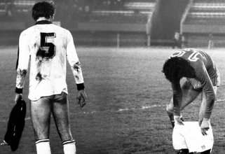 L'autrichien Bruno Pezzey et l'italien Francesco Graziani s'échangeant leur short.