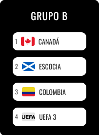 Groupe B : Canada, Ecosse, Colombie, un barragiste européen