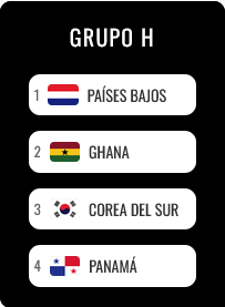 Groupe H : Pays-Bas, Ghana, Corée du Sud, Panama