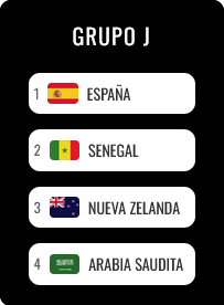 Groupe J : Espagne, Sénégal, Nouvelle-Zélande, Arabie Saoudite